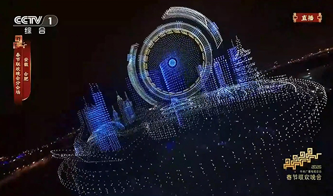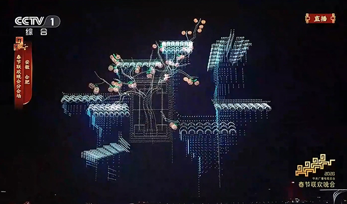 Image: 22,580 GD4.0 drones from EHang Egret form the iconic horse-head walls of Hui-style architecture pattern at the CMG Spring Festival Gala and set a new world record